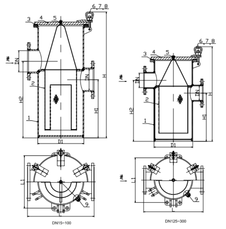 1.內筒與接管、蓋的間隙不大于網孔直徑。